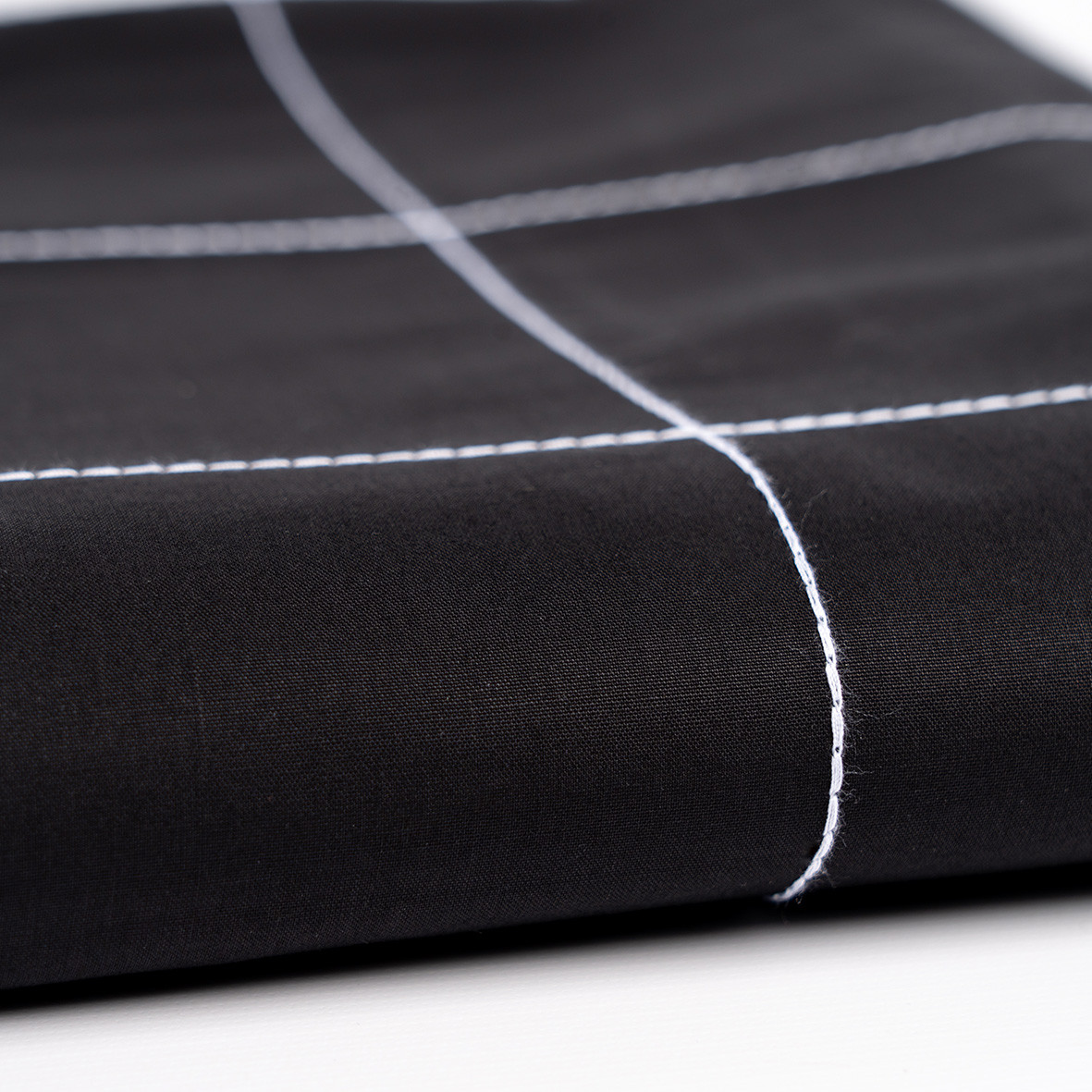 Cette housse de couette est faite en percale de coton 200TC 100% coton. Grâce à son tissage serré ce textile est isolant et respirant à la fois, idéal pour toute saison. Cette technique de tissage dote également le tissu d’une grande douceur ce qui en fait le partenaire idéal pour passer une nuit apaisante. De plus, notre housse de couette Nuit à Soho est décorée d’une surpiqûre contrastée qui dessine un damier sur le tissu et lui donne un effet graphique.