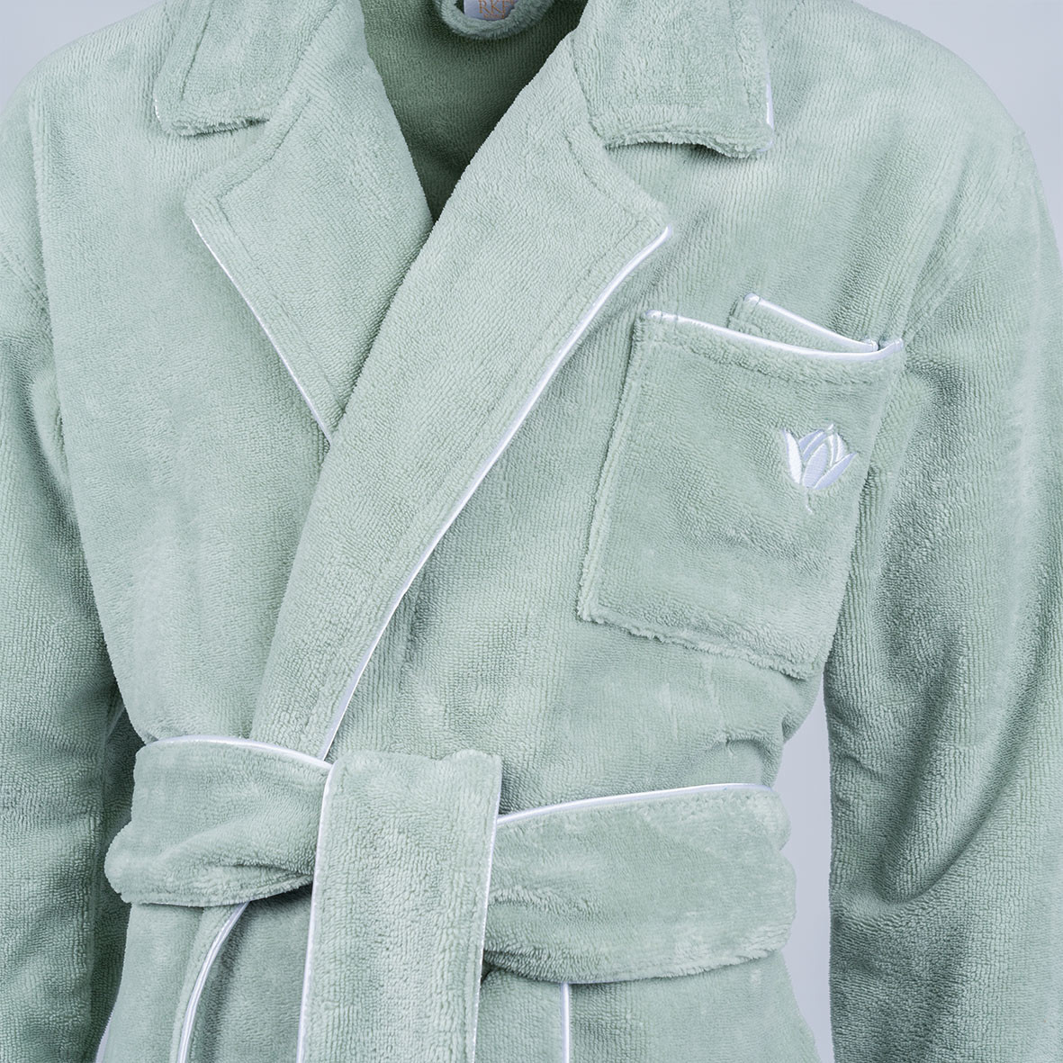With a masculine and elegant cut, its tailored collar, and its chest pocket, this Dreamsoft bathrobe will be the ideal companion for your moments of relaxation. Its intense sage green color contrasts with the white of the embroidery and the piping which highlights the contours. This bathrobe is made from Dreamsoft, an innovative material which offers a soft and silky touch for a feeling of uncomparable comfort. And with its masculine and timeless cut, this bathrobe allows you to enjoy a moment of relaxation while remaining chic and elegant.